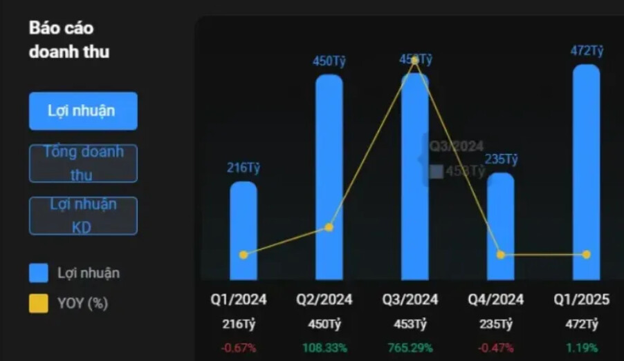 LNST Q1/2025 đạt 472 tỷ đồng (+118% svck).