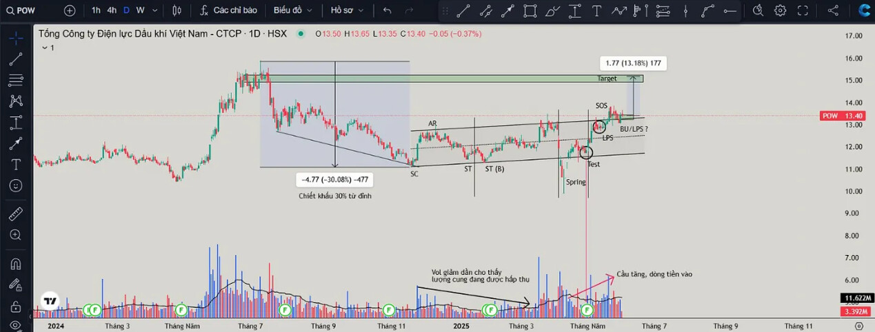 => Nếu đây là một phiên BU/LPS (Hành vi giá tets lại với volume thấp) thì target cho POW sẽ khoảng 13% (vùng đỉnh cũ).