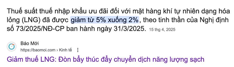 Thuế nhập khẩu khí LNG giảm từ 5% xuống còn 2%. Với đặc thù hoạt động sản xuất điện khí, đây là đòn bẩy giúp POW giảm đáng kể chi phí nguyên liệu, đặc biệt trong bối cảnh LNG vẫn chiếm tỷ trọng lớn trong giá thành sản xuất của các nhà máy như Cà Mau 1&2, Nhơn Trạch 1&2.