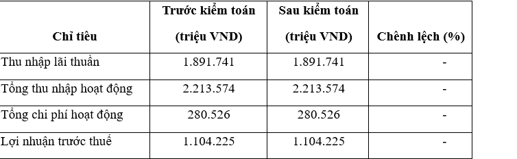 Số liệu trước và sau kiểm toán không có sự chênh lệch: