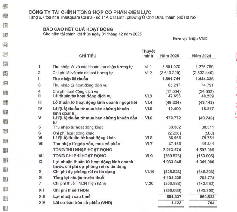Công ty Tài chính Tổng hợp Cổ phần Điện lực (EVF – sàn HOSE, MCK: EVF) vừa công bố báo cáo tài chính được kiểm toán năm 2025, theo đó, kết quả sau kiểm toán không có chênh lệch so với số liệu đã tự lập đã công bố trước đó.