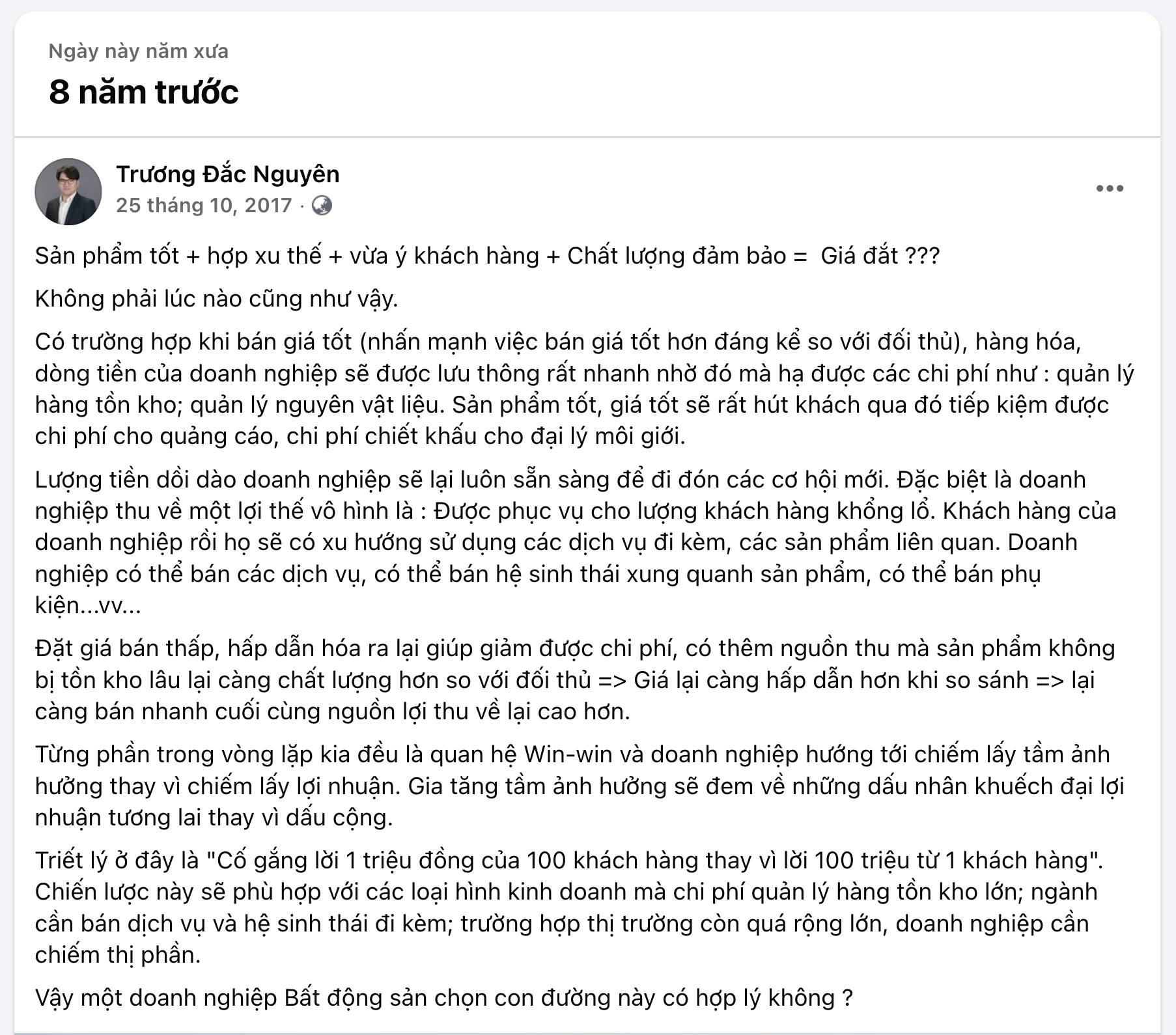 Bởi vậy có lẽ tư duy tìm sự hoàn hảo, dễ đánh giá về tiến độ bàn giao, hay biết thời điểm nào sẽ book lợi nhuận, sẽ mở bán đối với cổ phiếu bất động sản …