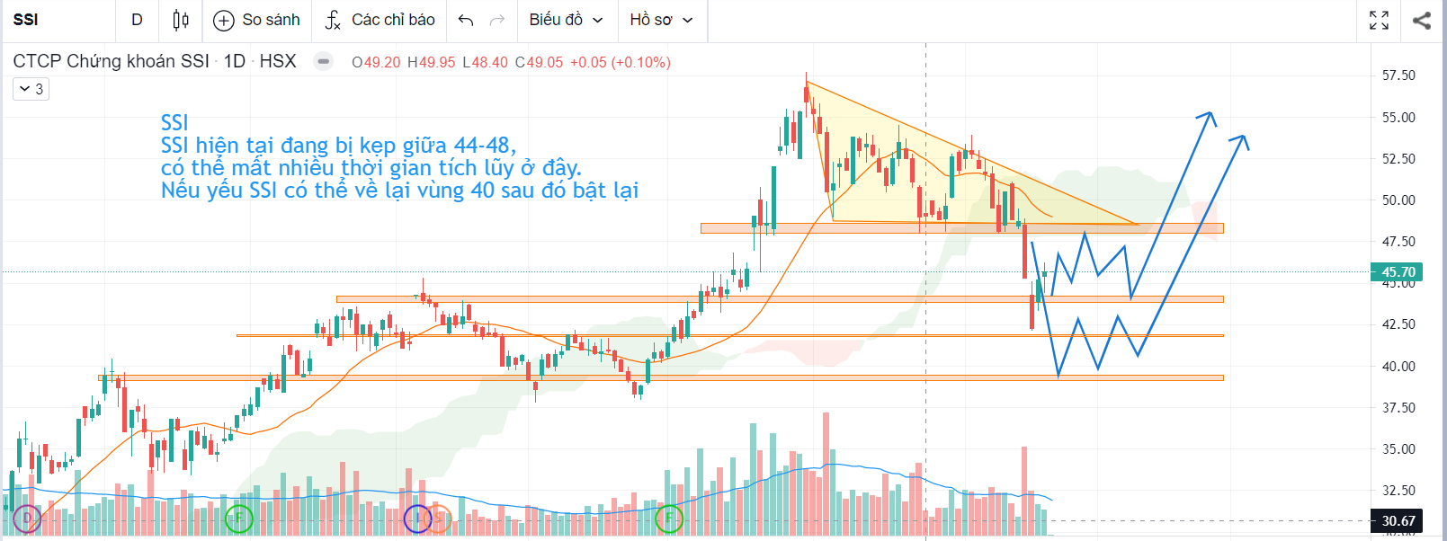SSI thì với kqua KD này thì định giá cho năm 2021 tầm 49 là đúng rồi, giờ kì vọng cho 2022 thôi hiện tại ai đầu tư trung hạn thì không sao, còn lướt lát thì nên hồi ra bớt, hoặc đánh T0 thời điểm hiện tại. Dòng chứng thường cuối quý 1 mới chạy.