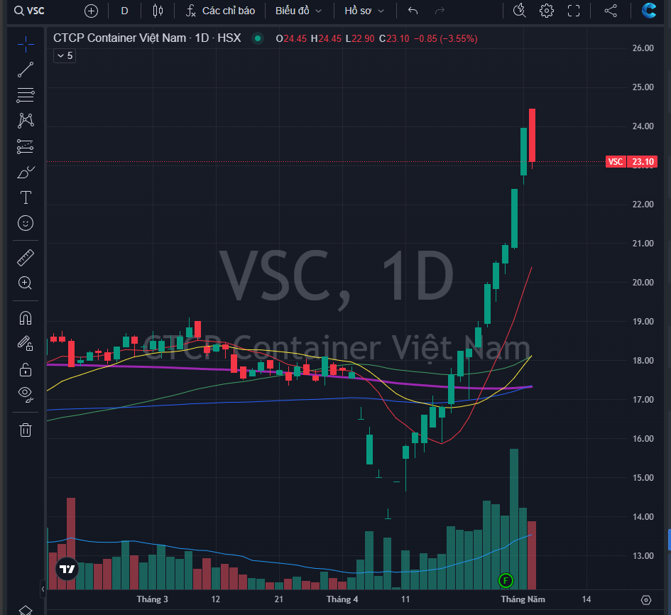 Cổ phiếu VSC tăng dựng đứng trong bối cảnh kết quả kinh doanh của Viconship khởi sắc. Theo BCTC quý 1/2025, Viconship ghi nhận doanh thu thuần đạt 682 tỷ đồng và lợi nhuận trước thuế 135 tỷ đồng, lần lượt tăng 16% và 50% so với cùng kỳ 2024. Lợi nhuận sau thuế đạt hơn 111 tỷ đồng, tăng gần 59% so với quý đầu năm ngoái.