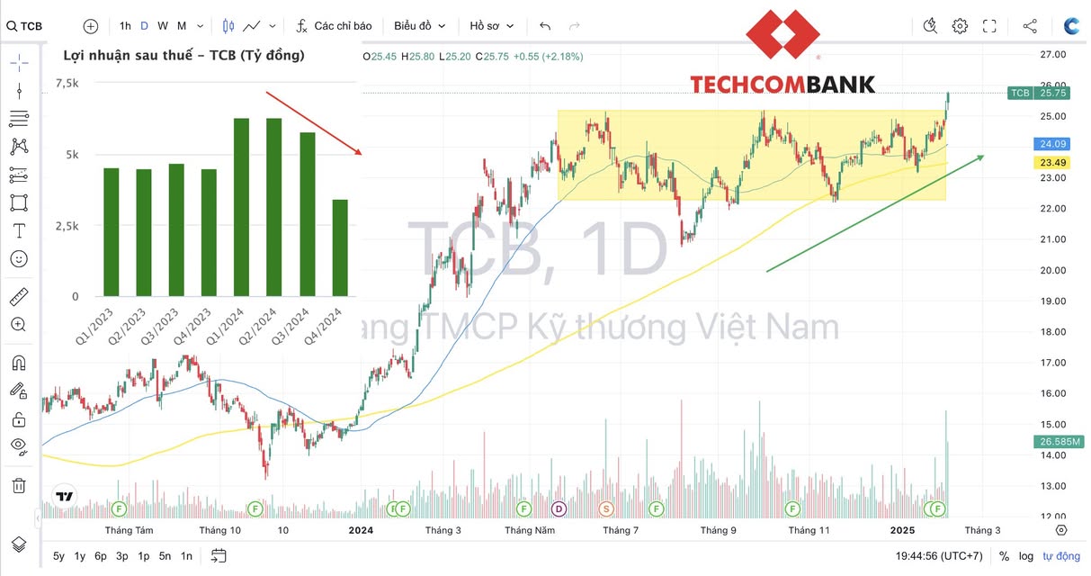 Cổ phiếu TCB - Lợi nhuận GIẢM, GIÁ VƯỢT ĐỈNH?