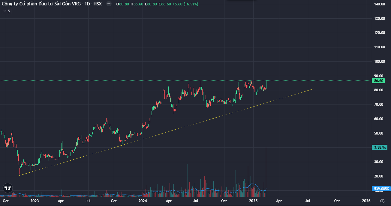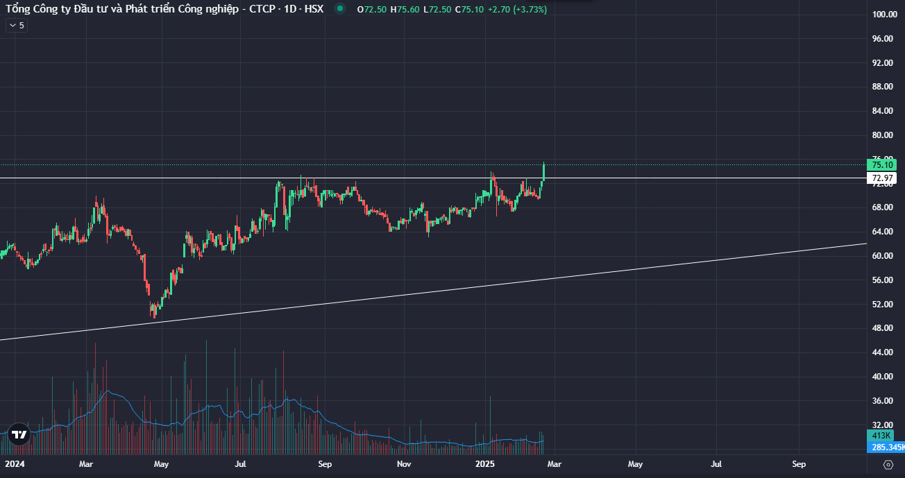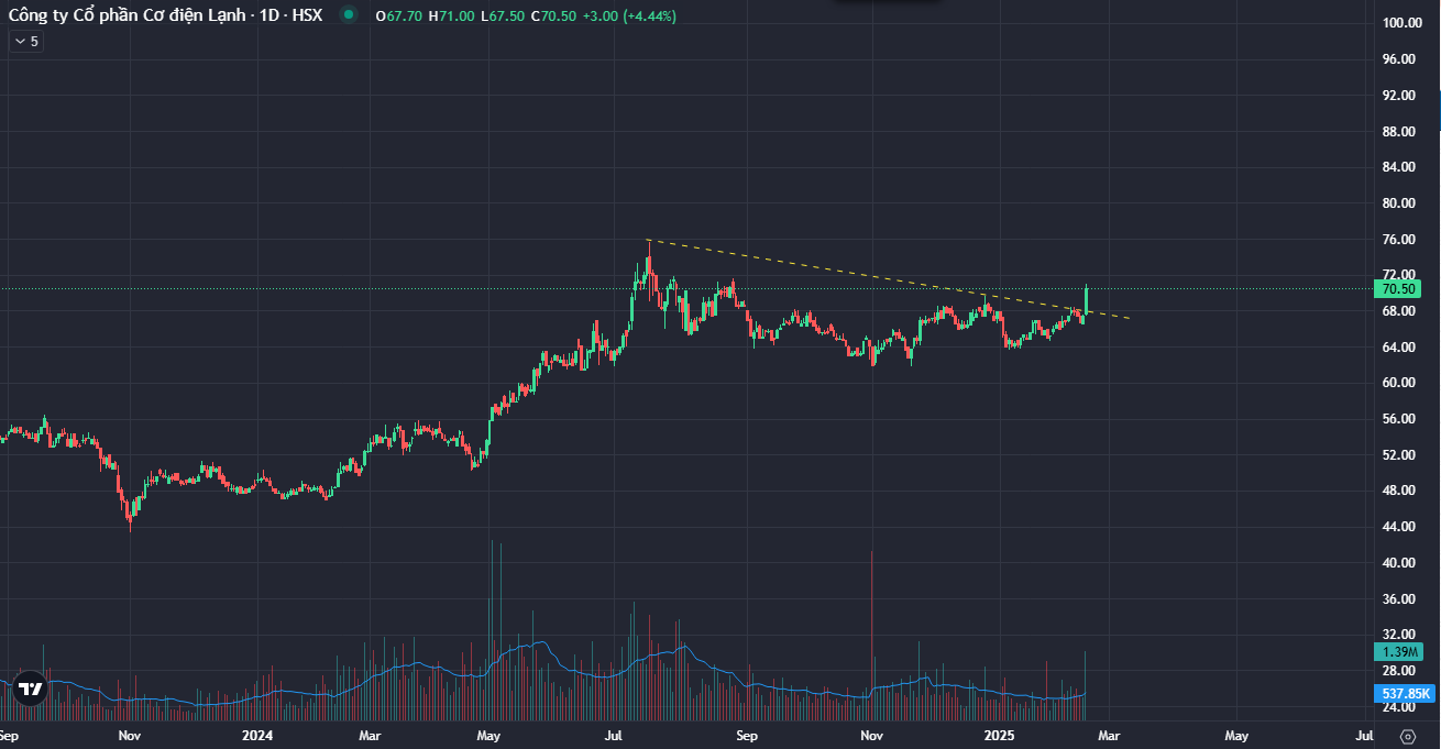 Xu hướng chính: Vừa phá vỡ đường trendline giảm dài hạn từ năm 2023.