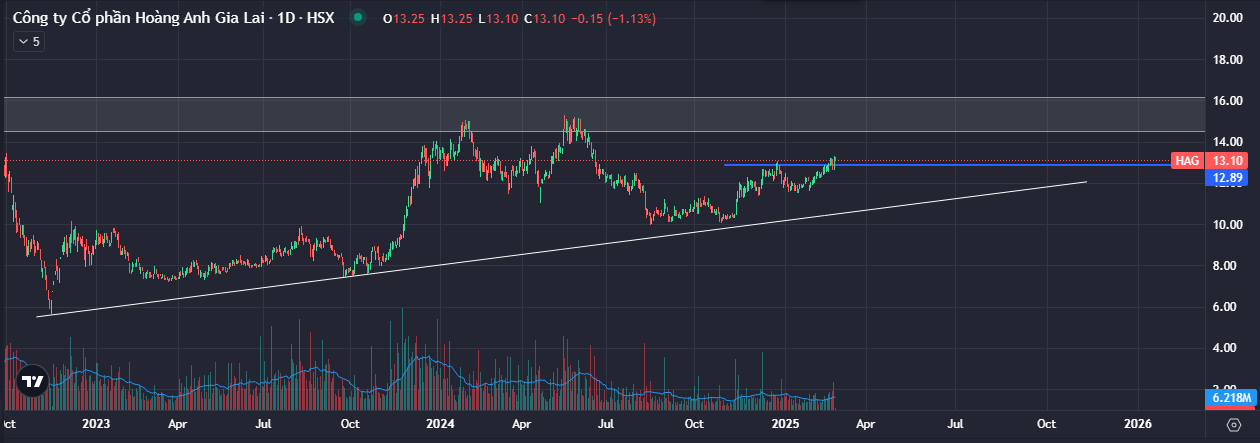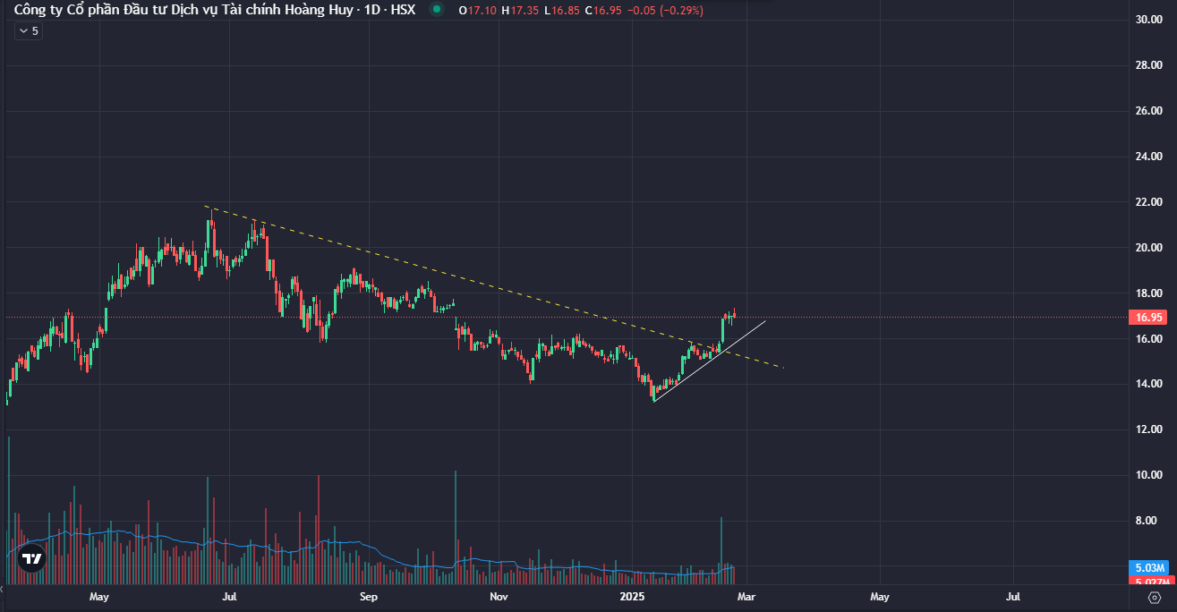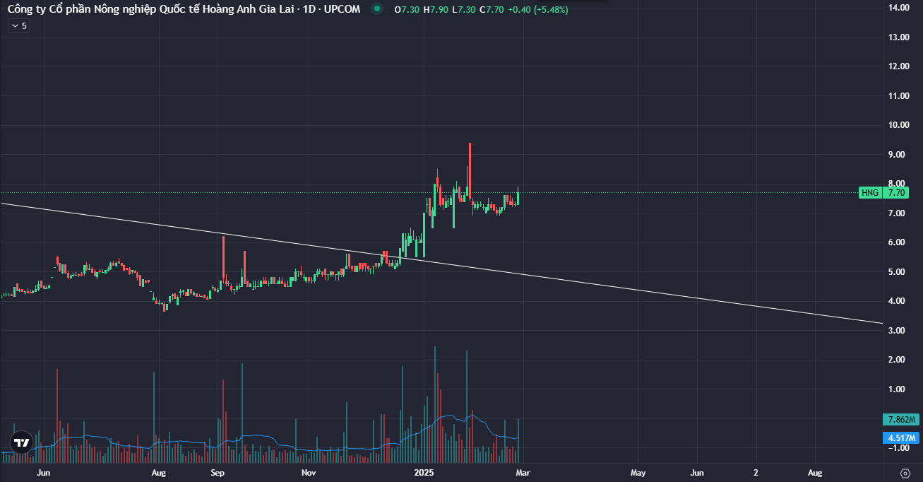 Xu hướng: HNG vừa phá vỡ xu hướng giảm dài hạn từ năm 2015, cho tín hiệu đảo chiều sang tăng