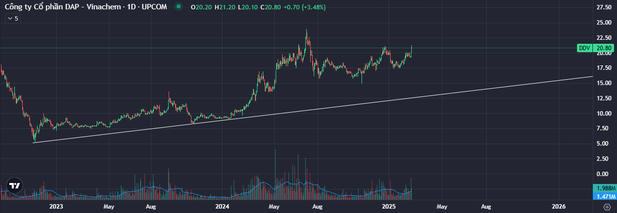 - Xu hướng chính: Xu hướng tăng dài hạn kể từ năm 2023