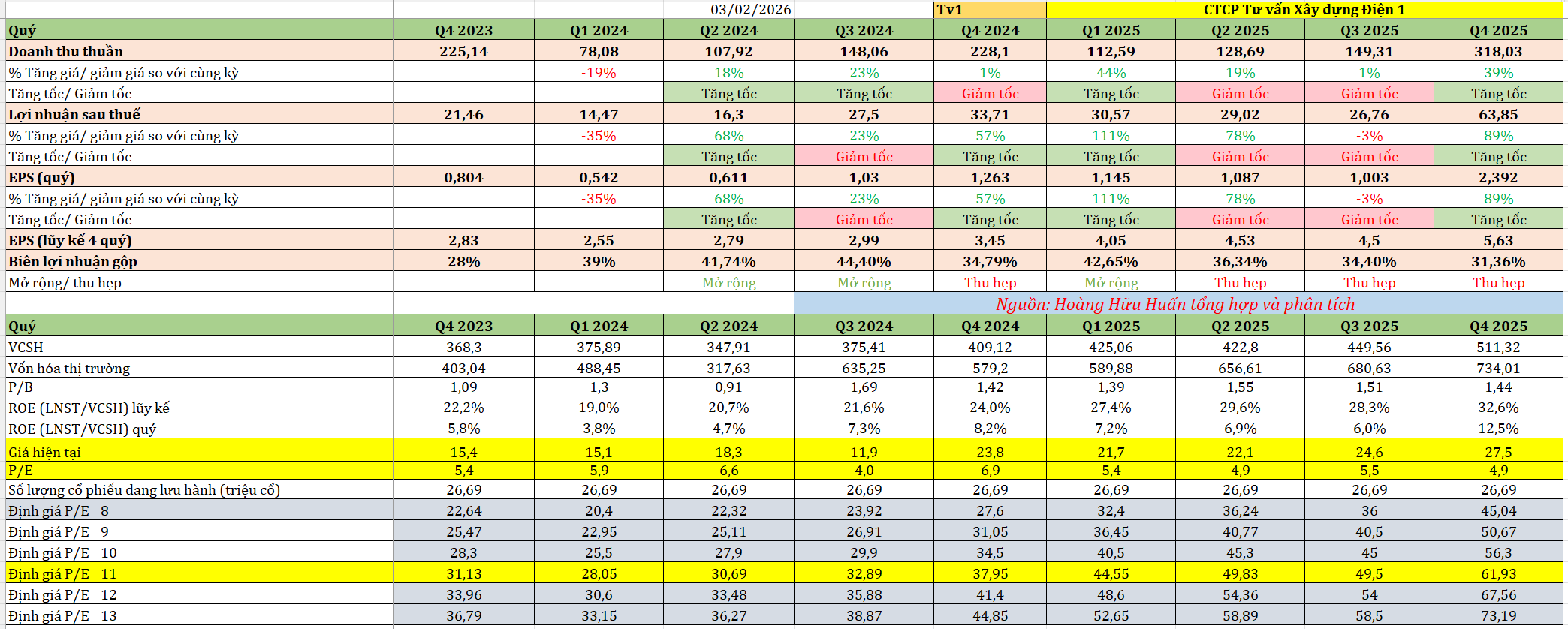 Trên đây là các chữ “New” giúp cổ phiếu TV1 dễ duy trì được đà tăng trưởng năm 2026, đặc biệt với các dữ liệu cuối quý 4/2025 Huấn cho rằng quý 1/2026 thì TV1 vẫn có cơ sở đạt tăng trưởng so với cùng kỳ: