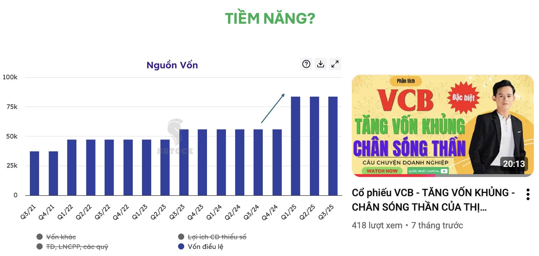 • VCB vừa hoàn tất đợt tăng vốn điều lệ “khủng” ở Q1/2025, mở rộng đáng kể năng lực cho vay.