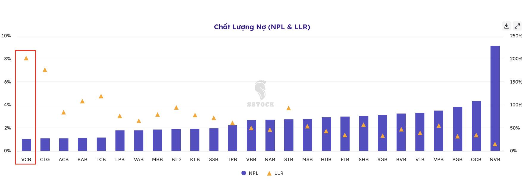 Dù cho vay lớn, tỷ lệ nợ xấu của Vietcombank chỉ khoảng 1%, thấp nhất toàn hệ thống.
