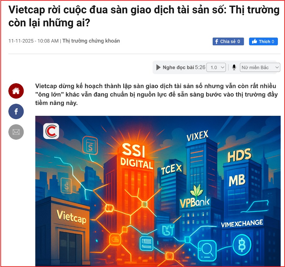 VCI không tham gia cuộc đua sàn tài sản số, trong khi đây là câu chuyện có thể tạo sóng mạnh cho nhóm chứng khoán.