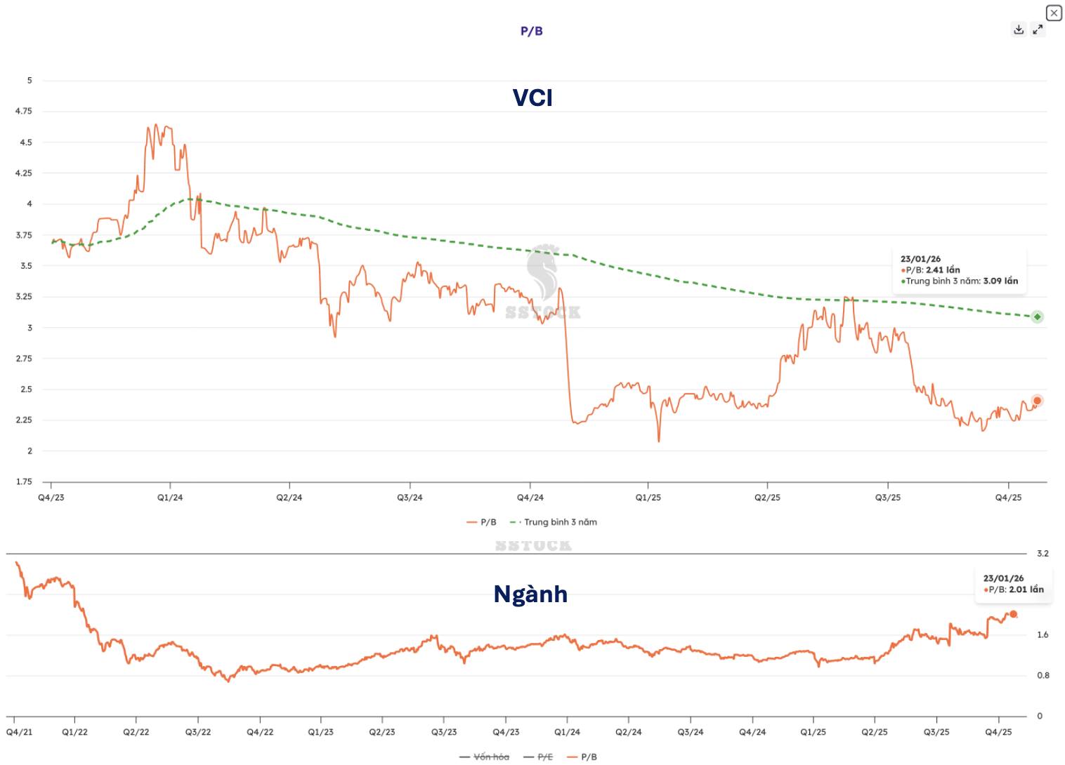 Điều này khiến VCI thiếu chất xúc tác ngắn hạn, giá cổ phiếu chủ yếu phản ánh nội tại thực tế, không phải kỳ vọng thông tin.