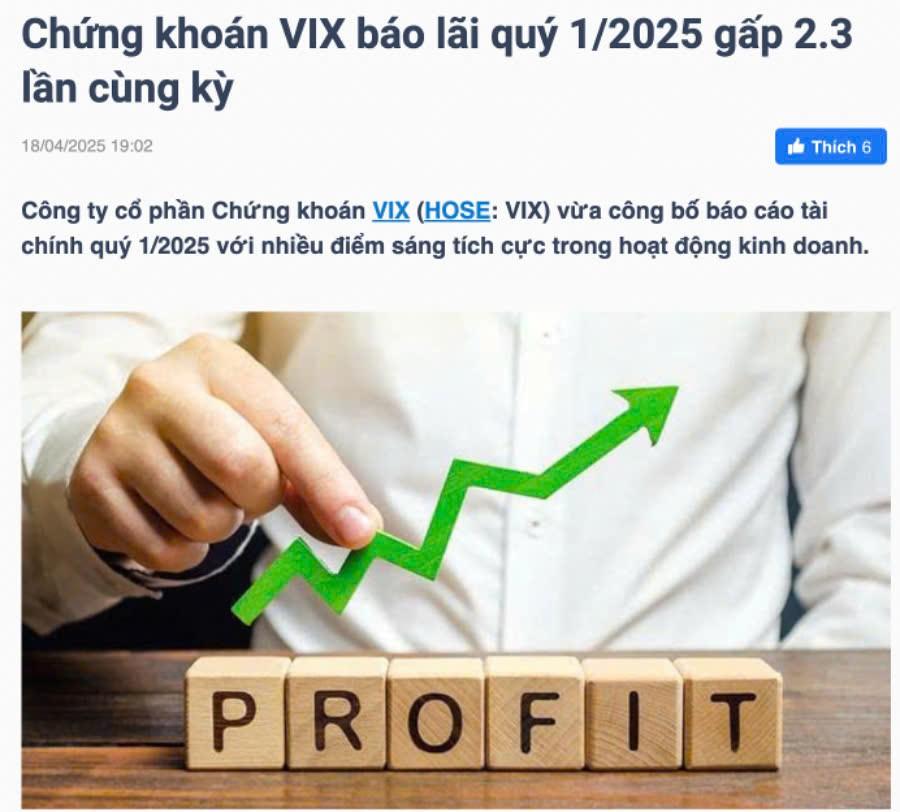 VIX (Chứng khoán VIX) vừa công bố BCTC quý 1/2025 với kết quả gây bất ngờ: Lợi nhuận sau thuế tăng gấp 2.3 lần so với cùng kỳ 2024, một con số thực sự ấn tượng!