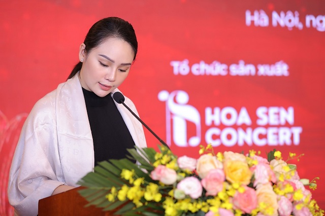 Bà Lê Hoàng Diệu Tâm – Tổng Giám đốc Công ty Hoa Sen Concert tại buổi họp báo công bố sự kiện lễ hội âm nhạc Hoa Sen SoundFest 2023 |