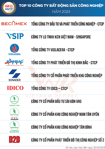 Danh sách 2: Top 10 Công ty Bất động sản Công nghiệp năm 2024