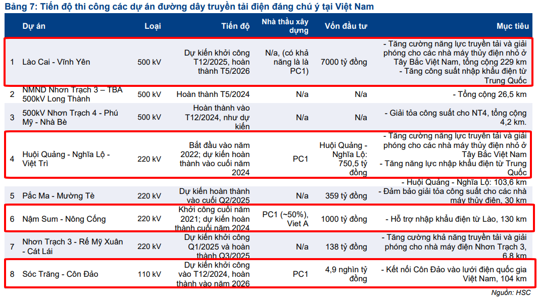Một số dự án đáng chú ý và tiến độ hiện tại của tập đoàn PC1 như sau: