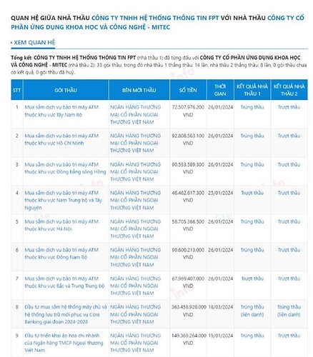 Ảnh chụp màn hình thể hiện mối quan hệ zích zắc của nhà thầu FPT và MITEC.