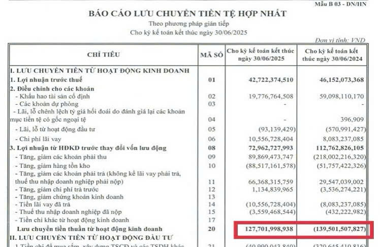 Dòng tiền từ kinh doanh dương 127,7 tỷ đồng (cùng kỳ âm 139,5).