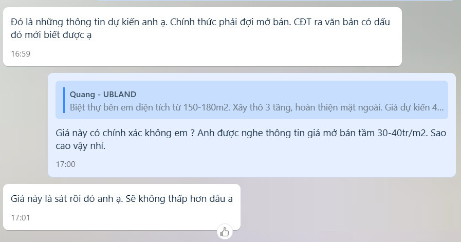 Giá này check trực tiếp từ môi giới UBLand. Khuyên anh em đừng check môi giới khác. UBLand là đơn vị phân phối trực tiếp độc quyền cho dự án. Nên sẽ chuẩn chỉ nhất. Hiện tại do vấn đề dịch bệnh nên khả năng cao vẫn dang delay lại mình đã đoán được phần nào. Pháp lý vẫn chưa rõ ràng và đang úp mở. Nhưng về giá mở bán thì hơi bất ngờ so với các thông tin mình có được.