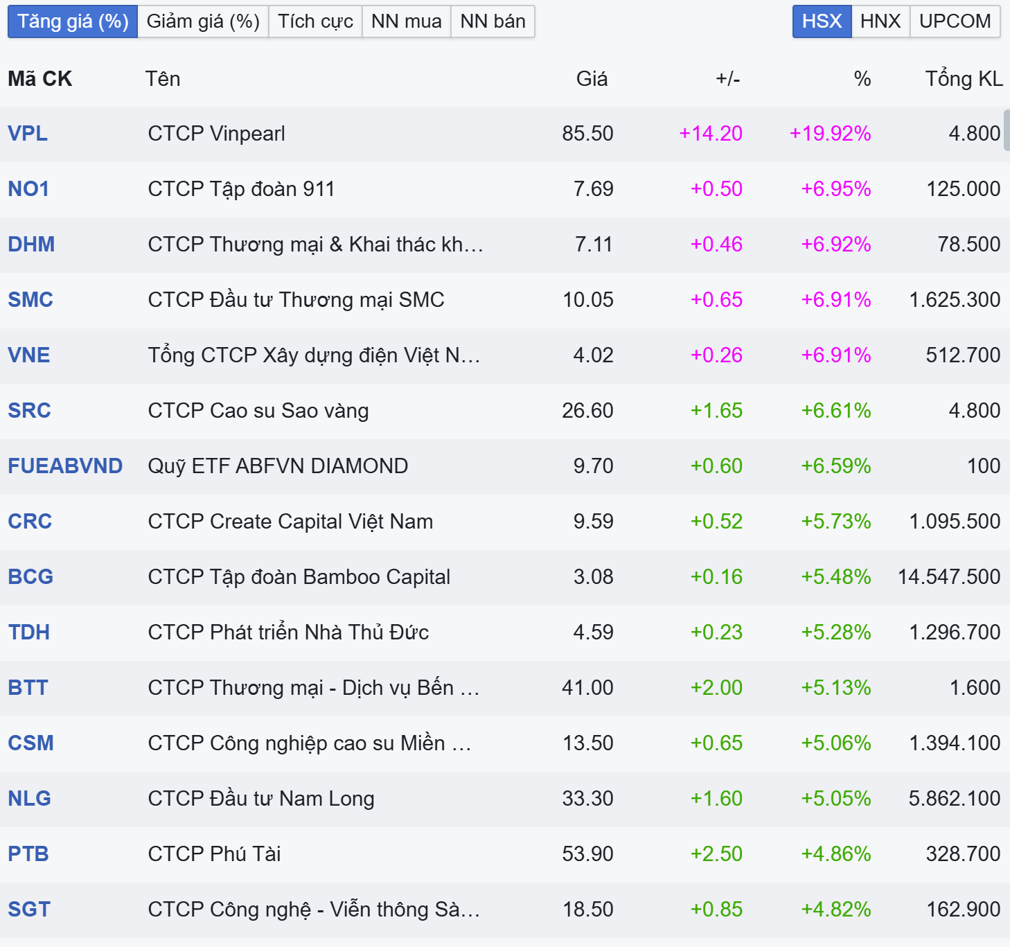 Nay CSM đã góp mặt trong top nhóm cp tăng mạnh sàn HSX . Duy trì phong độ ổn định trong nhóm này thêm 69-96 phiên nữa là ngon