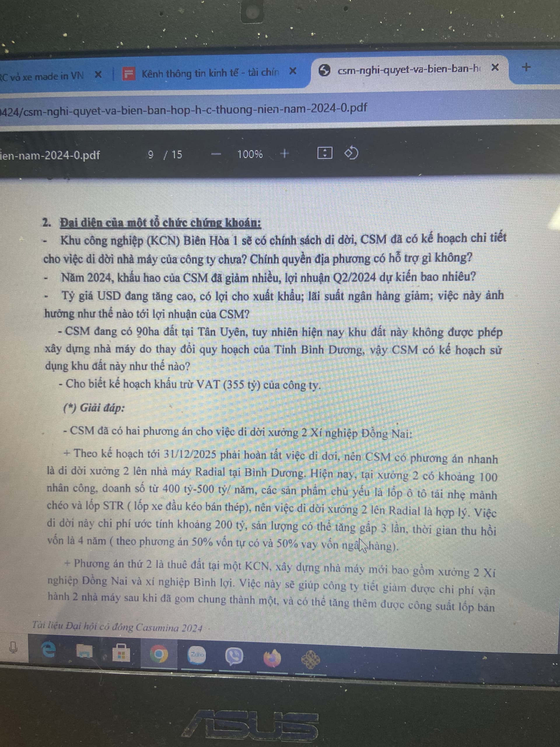Ngoài chỗ đất Nguyễn Biểu Q5 khá đẹp hôm mình đi đhcđ Csm có đì vòng quanh khá rộng rãi thì Csm còn có 90ha đất chỗ Tân Uyên Bình Dương cũng rất đẹp, tài sản hữu hình Csm rất nhiều , nhà máy Bình Dương to xin , Csm dùng chiến thuật khấu hao nhanh trên bctc nhưng cũng có cái hay từ các năm tới khấu hao sẽ gần như hết mà doanh thu vẫn làm đều 5000-6000 tỷ mà bà con chỉ vì rung lắc đi bán rẻ cũng lạ thật!