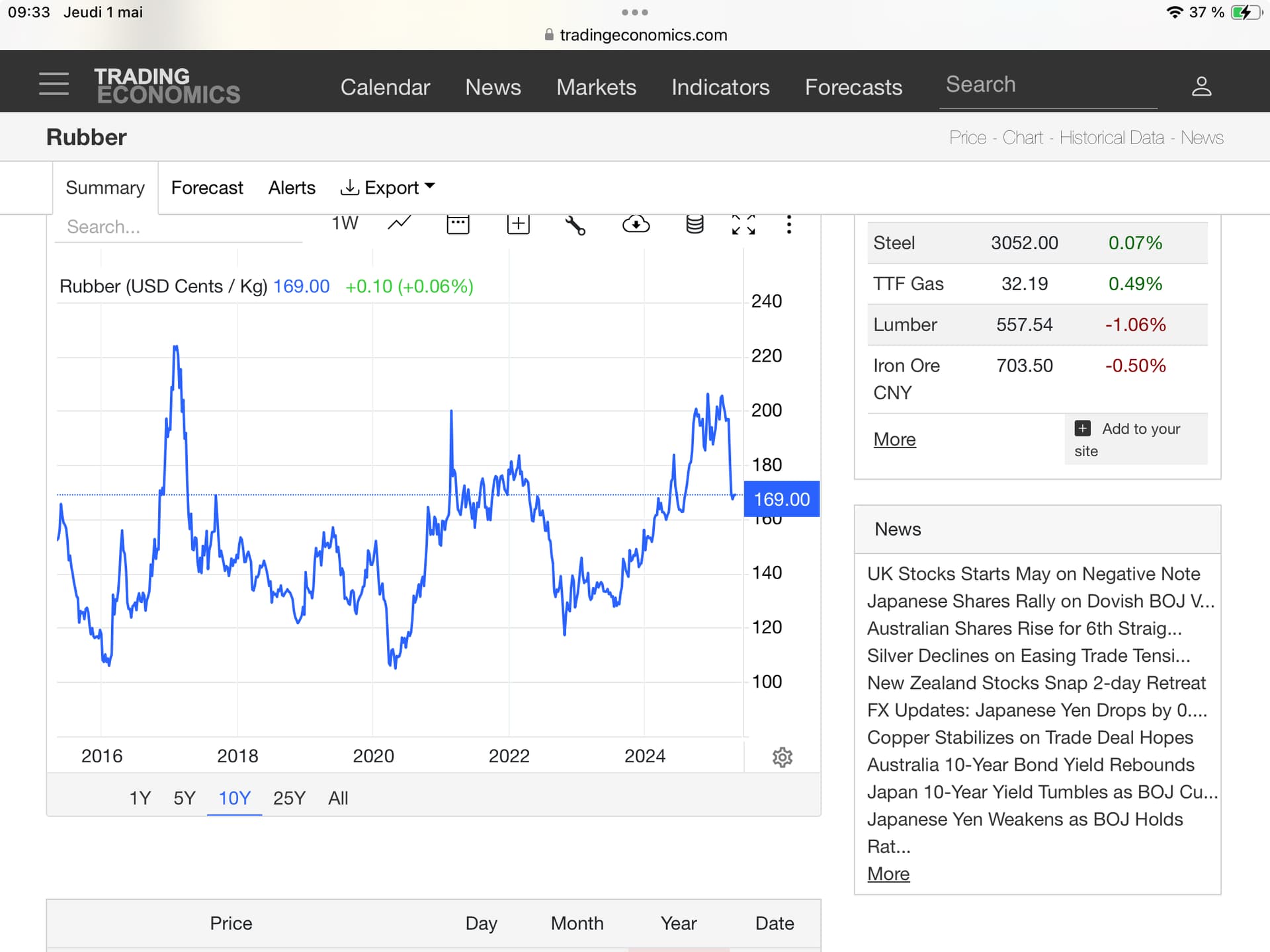 Giá rubber chỉ mới bắt đầu vào downtrend sau chu kỳ tạo đỉnh đầu năm nay, khả năng giảm về 160-140-120