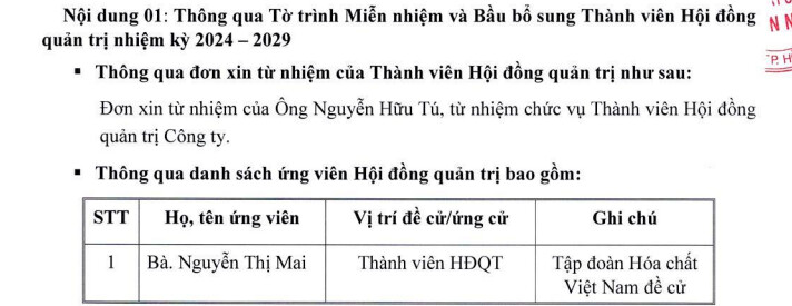 CSV có tân chủ tịch mới là Bà Nguyễn Thị Mai. Chủ tịch cũ là ông Nguyễn Hữu Tú được đôn lên làm Tổng Giám đốc của Vinachem. Bà Mai là người đại diện phần vốn của Tập Đoàn Hóa Chất Việt Nam, chiếm 25% vốn điều lệ từ 2017 đến nay(~27 triệu cổ).