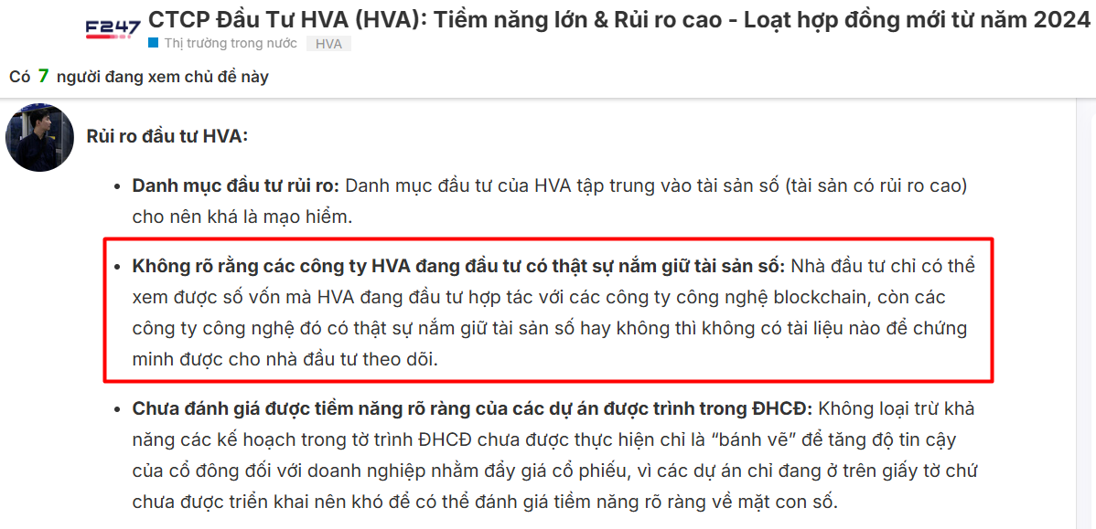 Danh mục đầu tư rủi ro: Danh mục đầu tư của HVA tập trung vào tài sản số (tài sản có rủi ro cao) cho nên khá là mạo hiểm.