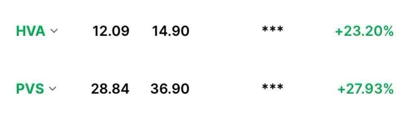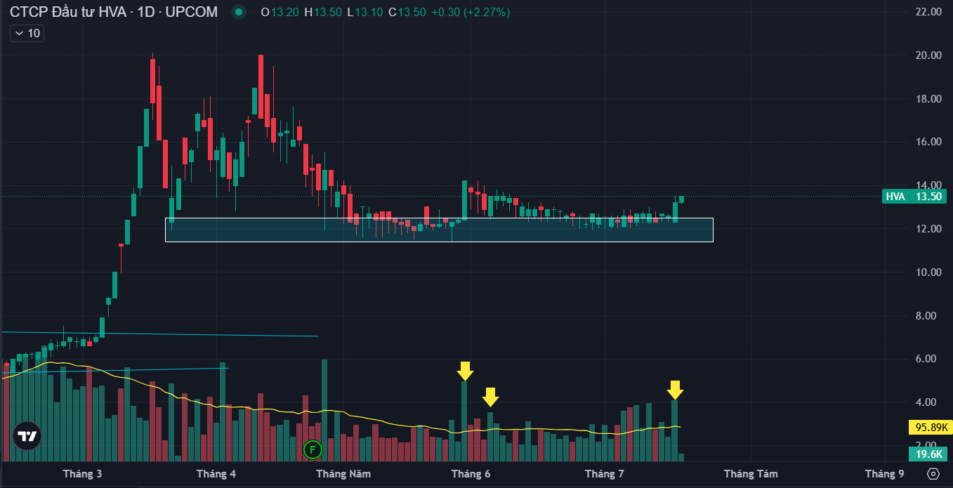 - HVA sau nhịp tăng nước rút thời điểm Q1/2025 sau đó đã giảm về vùng hỗ trợ 11.x - 13 quanh fibo 0.5 - 0.618 và đi ngang tái tích lũy trong 1 tháng. Phiên nổ giá trần 30/5 HVA đã vượt EMA20 & MA20, hiện tại đã test về hỗ trợ cũng như là đường EMA20 & MA20, xung lực dòng tiền ở mức khá so với thị trường chung → Đã re-test lại cản, kỳ vọng xuất hiện phiên nổ tiếp theo để xác nhận vào sóng
