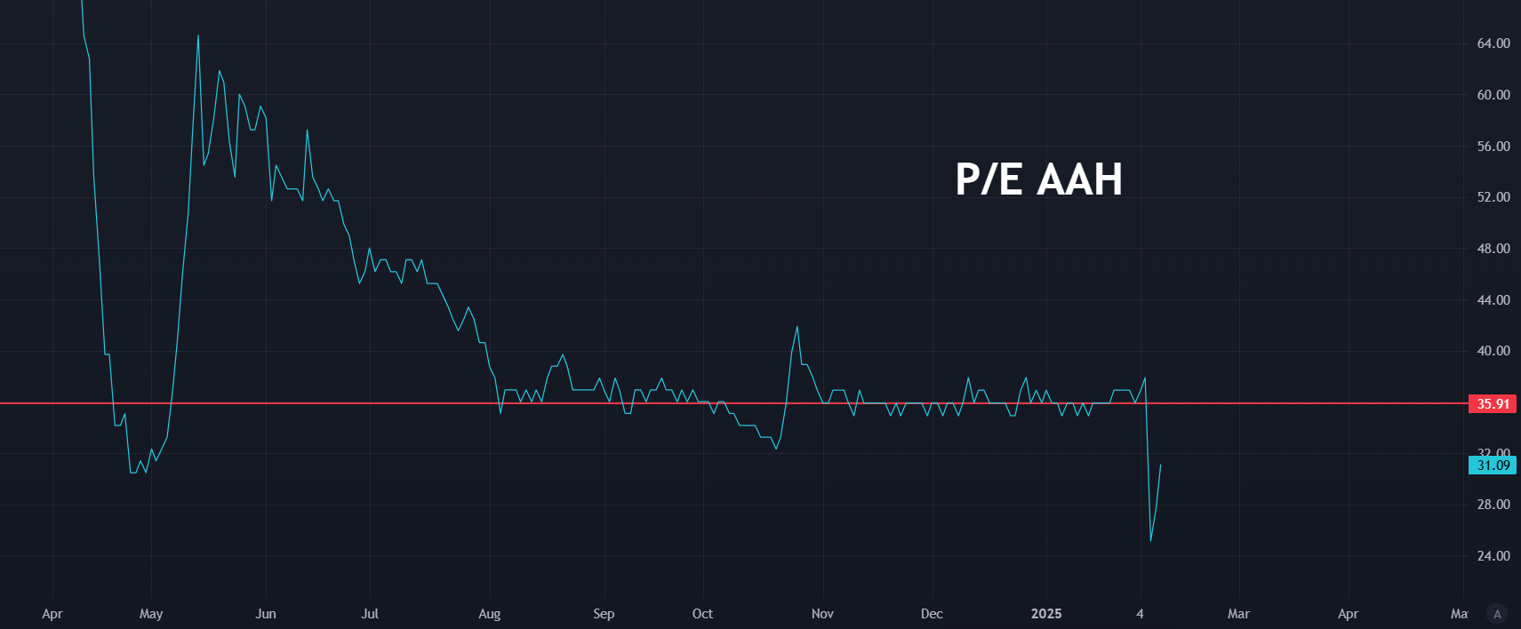 Giả sử cho mức nền lợi nhuận của AAH trung bình ~6 tỷ/quý. Lấy mức P/E trung bình ở quanh 35 - 36 thì định giá cho AAH năm nay sẽ ở quanh mức 7.000đ/cổ phiếu (x2 lần từ vùng nền tích lũy), khá là fair.
