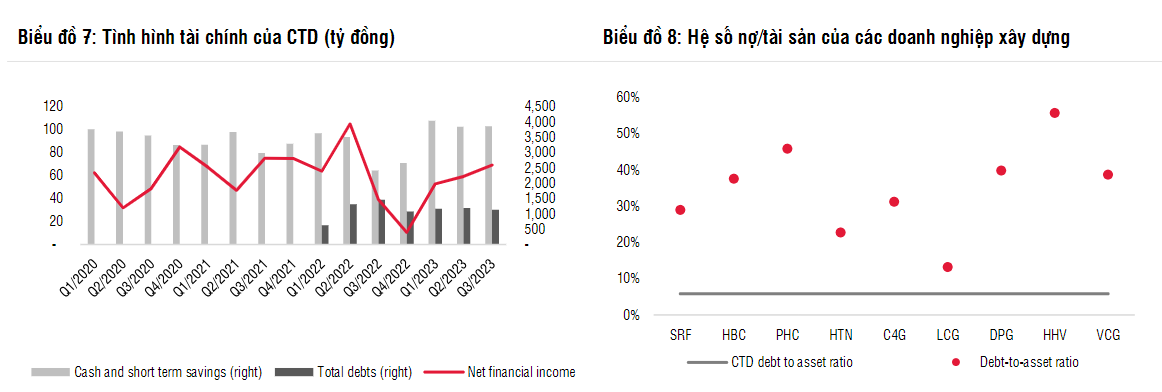 Cấu trúc bảng cân đối kế toán của CTD mang lại cả ưu và nhược điểm. Sở hữu lượng tiền mặt cao giúp công ty thanh toán tốt và ít phụ thuộc vào vốn vay, nhưng cũng có rủi ro liên quan đến các khoản hợp tác với chủ nhà đầu tư và nhà phát triển bất động sản.