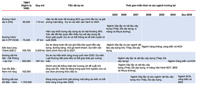 Giai đoạn 25-26 trở thành bản lề cho chu kỳ đầu tư công trung hạn trong bối cảnh 1 số dự án thuộc chu kỳ 21-25 như Cao tốc Bắc - Nam (gđ1).