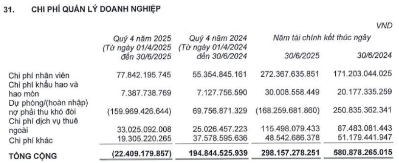 Trong kỳ, nhờ hoàn nhập 160 tỷ nợ phải thu khó đòi nên lợi nhuận sau thuế đạt 196 tỷ đồng – tăng 185% so với cùng kỳ. Theo tìm hiểu của chúng tôi, phần lớn khoản hoàn nhập này đến từ Cty TNHH Saigon Glory. Sau nhiều năm tồn đọng thì đến cuối Q4/25, khoản nợ này chính thức “biến mất” khỏi báo cáo tài chính của CTD.