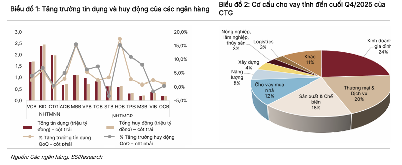 SSI dự báo lợi nhuận trước thuế năm 2026 của CTG đạt khoảng 52.400 tỷ đồng, tăng 20,6% so với cùng kỳ, nhờ tăng trưởng tín dụng khoảng 15%, trong khi NIM và chi phí tín dụng duy trì ổn định. Bên cạnh đó, nguồn thu từ nợ xấu đã xử lý được kỳ vọng tiếp tục đóng góp tích cực trong năm 2026.