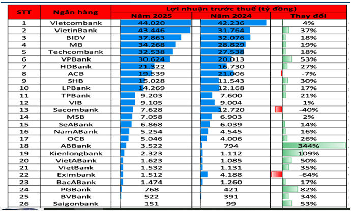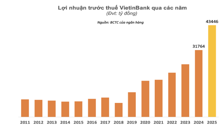 Đến năm 2024, lợi nhuận trước thuế ước tính đạt 31.764 tỷ đồng. Đặc biệt, mục tiêu cho năm 2025 được đẩy lên con số kỷ lục là 43.446 tỷ đồng. Đây được coi là một bước nhảy vọt về hiệu quả kinh doanh, đưa Vietinbank tiến sát hơn bao giờ hết đến vị trí dẫn đầu hệ thống.