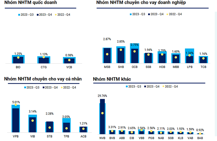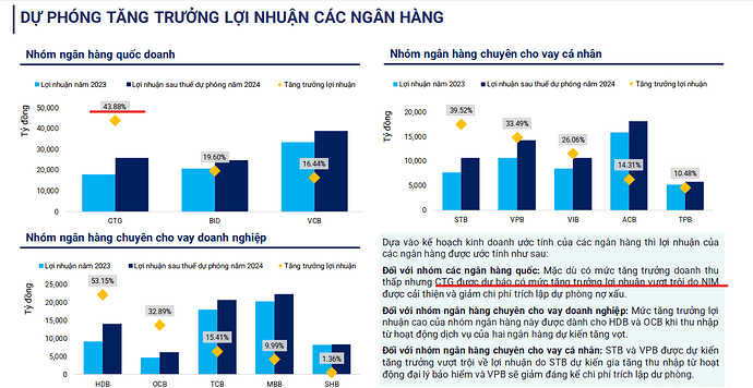 -Lợi nhuận ngành ngân hàng vẫn tăng trưởng trong giai đoạn kinh tế khó khăn. Đối với nhóm quốc doanh: các ngân hàng