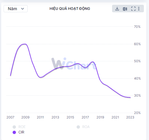 -Chi phí hoạt động của CTG liên tục giảm qua các năm. Đặc biệt giảm mạnh từ 2018 trở lại đây.