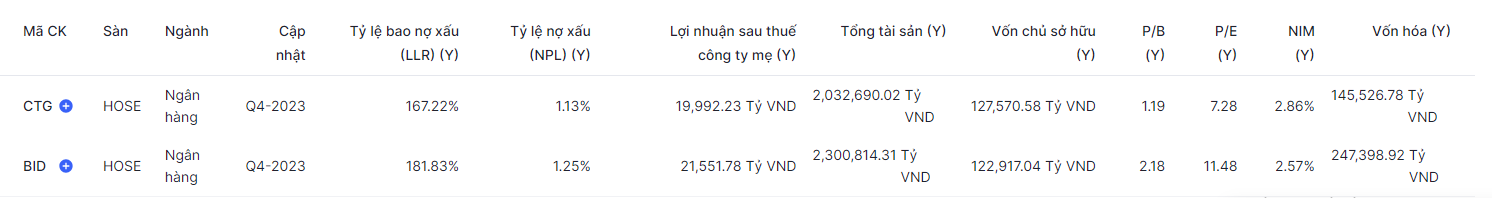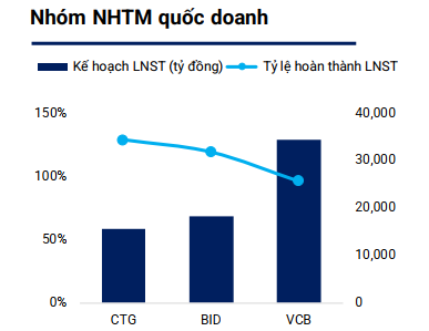 đều hoàn thành mức lợi nhuận theo kế hoạch. Trong đó, CTG và BID đạt mức cao hơn khoảng 20% so với mục tiêu.