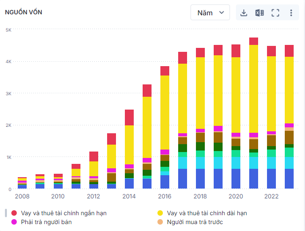- Kể từ năm 2013 khi công ty đầu tư vào các dự án BOT thì các khoản vay dài hạn của công ty luôn chiếm trên 50% tổng nguồn vốn.