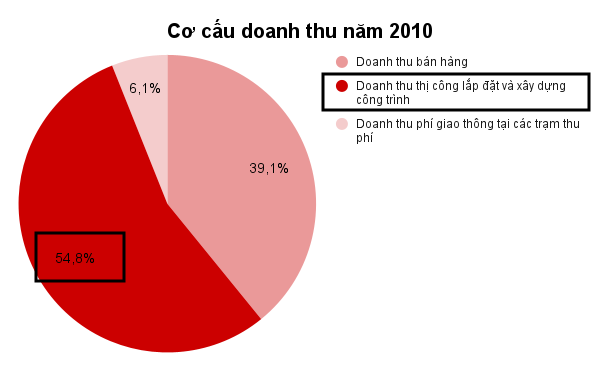 Chiếm gần 60% doanh thu công ty trong thời gian qua đến từ các trạm thu phí BOT với 4 dự án .