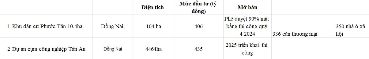 Với 2 dự án Khu dân cư Phước Tân (10.4ha) và Cụm khu công nghiệp Tân An (446.4ha) đang trong giai đoạn giải phóng mặt bằng, kế hoạch triển khai thi công vào năm 2025. Khi đi vào hoạt động, các dự án này có thể mang lại nguồn doanh thu và lợi nhuận ổn định cho CTI, bù đắp cho các lĩnh vực kinh doanh truyền thống.