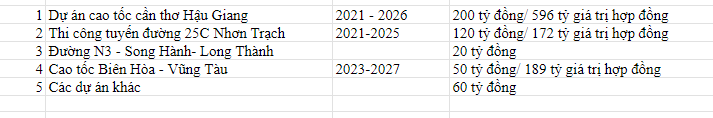 - Doanh thu bán hàng (bê tông, nhựa nóng)