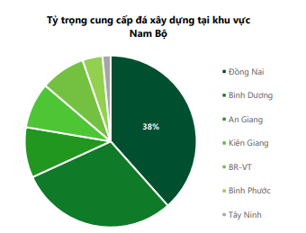 - Xếp thứ 1 về trữ lượng và tiêu thụ tại Đông Nam Bộ. Diện tích quy hoạch 1.500 ha, trữ lượng 400 triệu m3, đã thăm dò 83 triệu m3 và cung cấp 38% đá cho khu vực.
