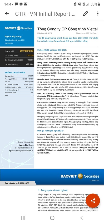 khi mà dòng tiền vào chứng khoán quá nhiều, sàn Hose nghẽn lệnh thì cổ phiếu tăng trưởng có nền tảng kinh doanh tốt tại HNX, Upcom là ưu tiên số 1. Tôi luôn để CTR với tỷ trọng lớn nhất trong danh mục đầu tư của mình.