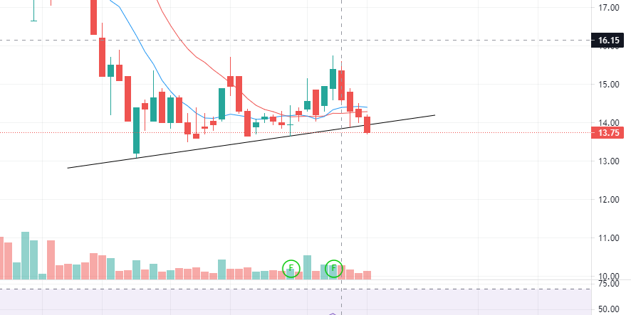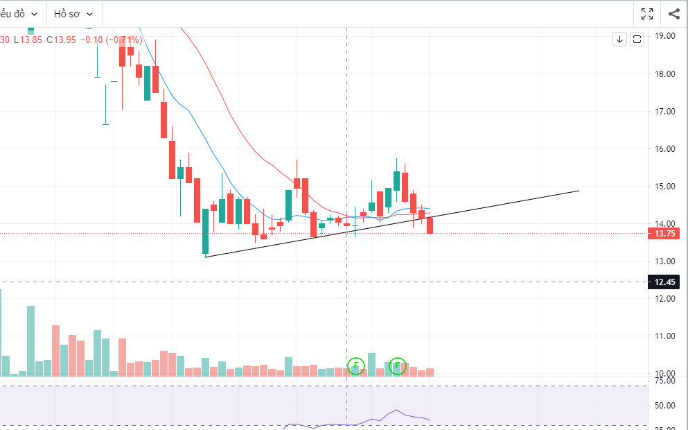Trường hợp nào NVL sẽ vào trend giảm? Nó sẽ vào trend giảm khi thủng 13 với vol gần bằng hoặc lớn hơn vol ngày 27/12 tức là khoảng từ 25m trở lên