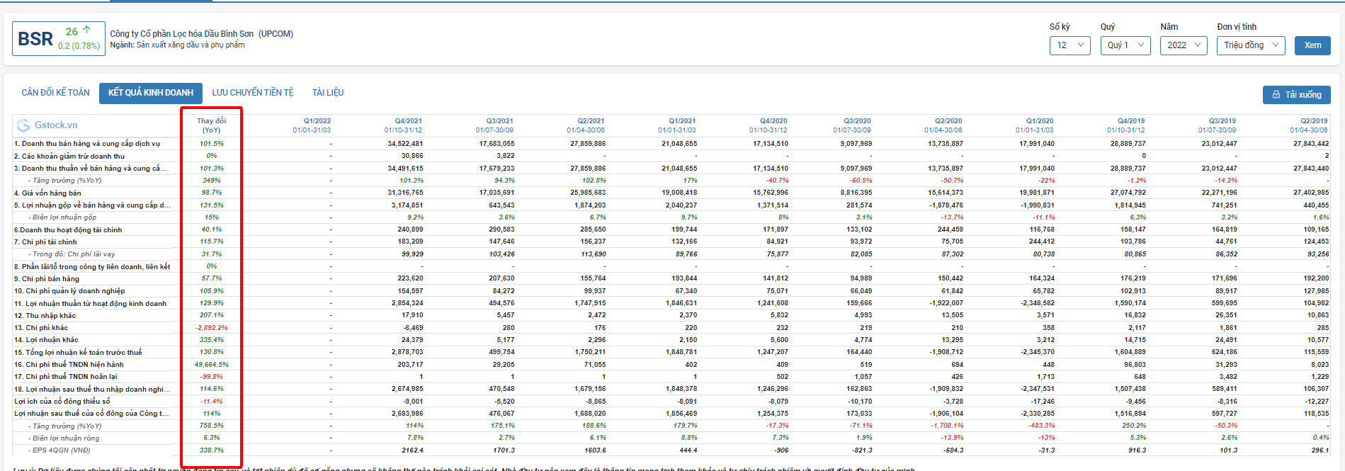 Xin gửi anh nhận định BSR