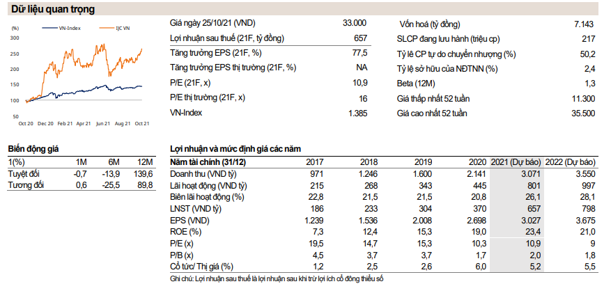 Kết thúc 9T2021, IJC ghi nhận 2.339 tỷ đồng doanh thu (+27,1% CK) và 691 tỷ đồng lợi nhuận trước thuế (LNTT,