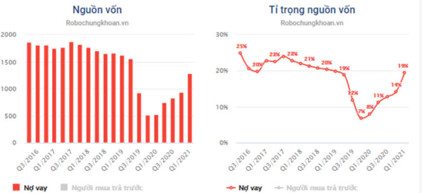 So với các doanh nghiệp cùng ngành thì tỉ lệ nợ vay trên là khá thấp và trong các quý gần đây nợ vay công ty có tăng lên do công ty đang tiếp tục đi mở rộng quỹ đất để duy trì sự tăng trưởng trong tương lai, cụ thể quỹ đất như thế nào chúng tôi sẽ thông tin trong phần sau.