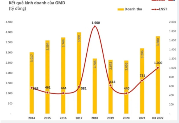 Cụ thể, trong năm 2022, doanh nghiệp lên kế hoạch doanh thu hợp nhất 3.800 tỷ đồng và lợi nhuận sau thuế hợp nhất 1.000 tỷ đồng, lần lượt tăng 19% và tăng 24% so với thực hiện trong năm 2021. Nếu thành công, đây cũng là mức lợi nhuận cao thứ hai trong lịch sử hoạt động của GMD, chỉ sau thành tích đột biến 1.900 tỷ đồng của năm 2018 nhờ các hoạt động bán vốn các công ty con.